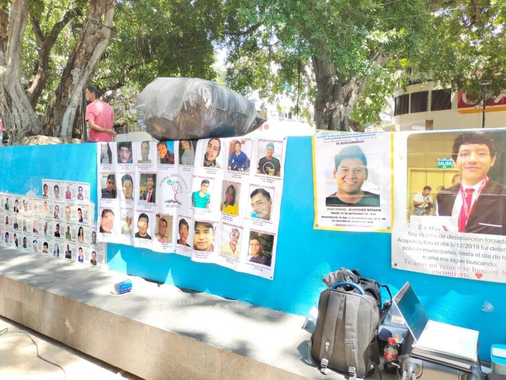 Familiares de desaparecidos protestaron este lunes en el zócalo de Acapulco, para exigir a las autoridades que detengan la demolición de un mural con los rostros de varias víctimas.