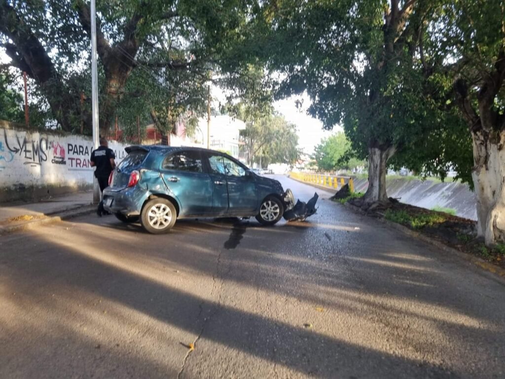 Respecto al accidente se informó por parte de las autoridades que la conductora del auto marca Nissan, tipo March de color azul, placas de circulación HAV-843-D de nombre Leslie Carolina “N” conducía a exceso de velocidad.Al circular sobre una pequeña curva perdió el control del auto estampándose contra un árbol lo que provocó que resultara con lesiones leves que no amerito ser trasladada a alguna clínica.