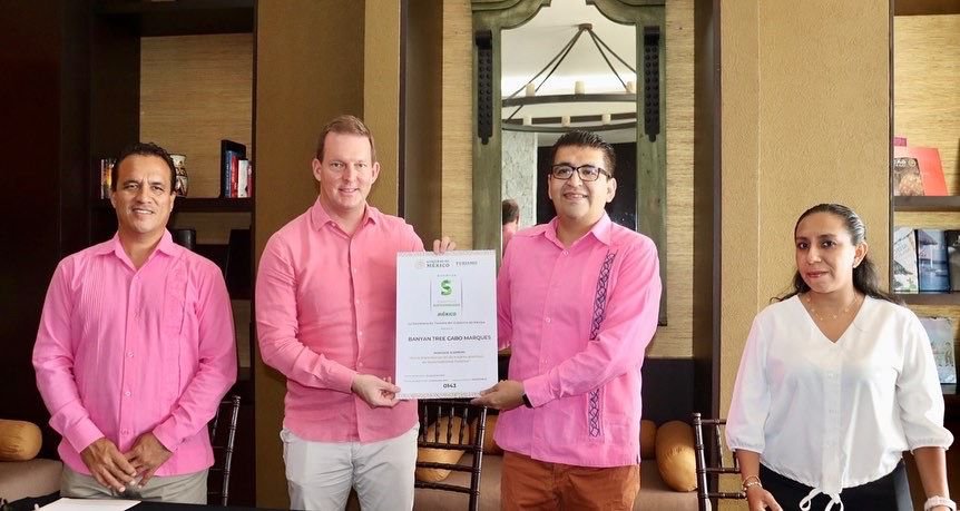 La Secretaría de Turismo de Guerrero entregó al Hotel Banyan Three el 𝐃𝐢𝐬𝐭𝐢𝐧𝐭𝐢𝐯𝐨 𝐒, de Acapulco que reconoce las buenas prácticas en materia de sustentabilidad de organizaciones a nivel nacional, avalado por la Secretaría de Turismo federal.