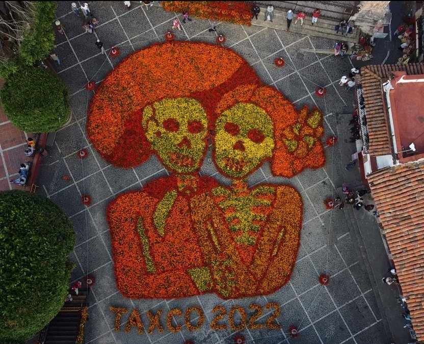 El presidente municipal, Mario Figueroa Mundo, invitó a los taxqueños y visitantes para contemplar la obra de arte elaborada de manera natural en la Plaza Borda en la víspera del día de muertos,