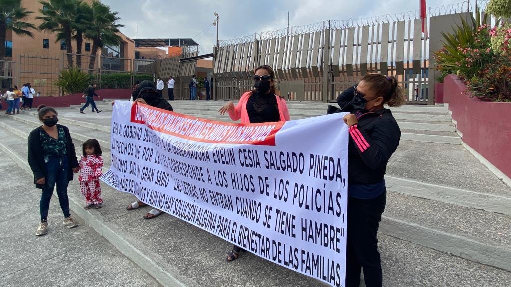 Viudas de policías del estado fallecidos a causa del Covid-19, acudieron a las oficinas del Poder Ejecutivo para exigir que les paguenla pensión y el seguro de vida al que tienen derecho, porque “nos están dando largas para liberarlos y mientras tanto nuestra familia está pasando hambre”.