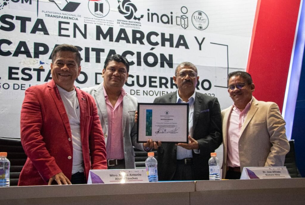 El Comisionado Presidente del Instituto de Transparencia, Acceso a la Información y Protección de Datos Personales del Estado de Guerrero (ITAIGro), Roberto Nava Castro y el Comisionado, Francisco Gonzalo Tapia Gutiérrez, le entregaron al rector de la Universidad Autónoma de Guerrero, José Alfredo Romero Olea un reconocimiento a la máxima casa de estudios por obtener más del 93% de aprobación en el cumplimiento con sus obligaciones de Transparencia y el Sistema de Protección de Datos Personales establecida en la ley.