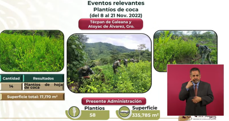 El 9 de febrero del 2021, hace poco más de un año, el Ejército descubrió y destruyó por primera ocasión plantíos de coca en el municipio de Atoyac de Álvarez.