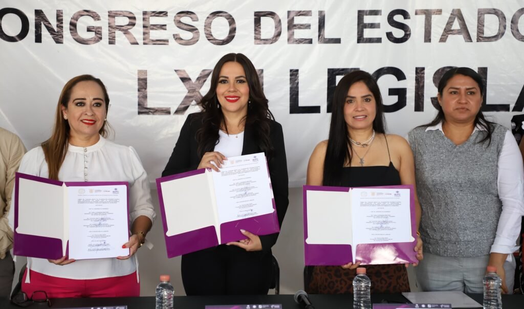 Las presidentas de la Junta de Coordinación Política y de la Comisión para la Igualdad de Género, diputadas Yoloczin Domínguez Serna y Gabriela Bernal Reséndiz, respectivamente, firmaron a nombre del Congreso del Estado un Convenio Marco de Colaboración Interinstitucional con el Instituto Electoral y de Participación Ciudadana (IEPC) y la Secretaría de la Mujer (Semujer).