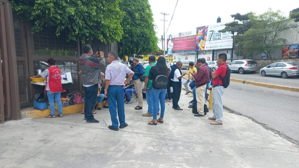 Alrededor de las 10:30 de la mañana de este martes, un grupo de 20 profesores y administrativos inconformes llegó al acceso al estacionamiento de las instalaciones del Poder Legislativo, y se manifestó.