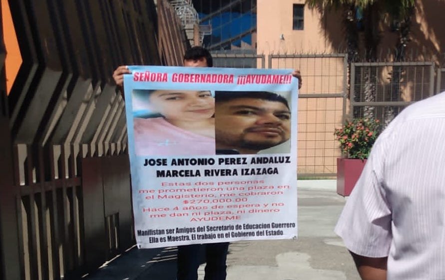 transcurso de 4 años le entregó la cantidad de 270 mil pesos a José Antonio Pérez, para la asignación de la plaza la cual le fue ofrecida en San Luis Acatlán y después en Atoyac de Álvarez.