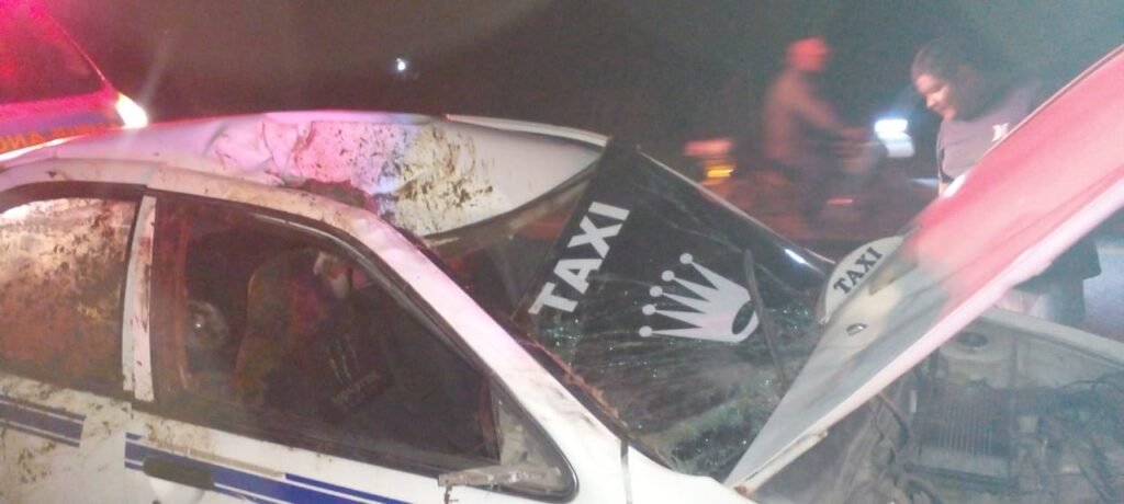 De acuerdo al reporte de Protección Civil Municipal, establecieron que este suceso ocurrió a las 5:00 de la madrugada del domingo, sobre esta vía de comunicación, en donde se vio involucrado un taxi del servicio del transporte público, del sitio Reforma de la cabecera municipal, con franjas azules a los costados, marcado con el número económico #19.