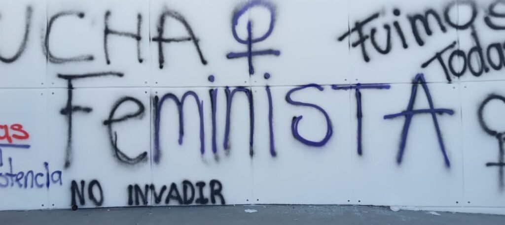 El día de ayer a las 11 de la noche, las Revueltas comenzaron a pintar las leyendas: “Espacia Feminista” “Mujeres Creando”, “Lucha Feminista”,” No invadir”, entre otras.
