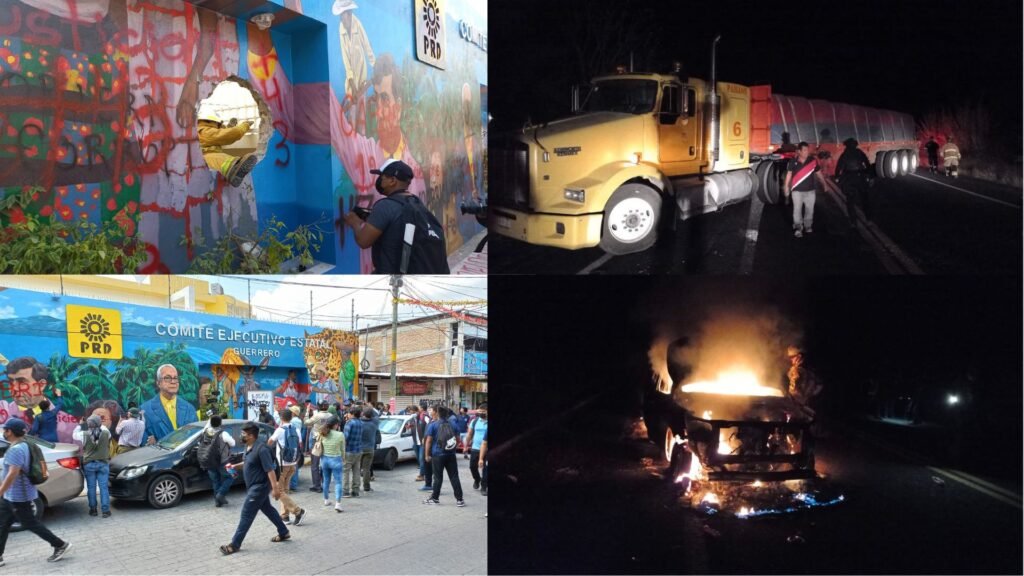 Normalistas de Ayotzinapa vandalizaron, por enésima ocasión, la sede estatal del Partido de la Revolución Democrática, en Chilpancingo, donde causaron cuantiosos daños, y por la tarde se enfrentaron contra policías del estado que les impidieron robar un par de vehículos que pretendían llevarse a sus instalaciones, en el Libramiento de cuota a Tixtla. En este altercado, el coordinador de la Policía del Estadoresultó lesionado y tuvo que ser hospitalizado, informaron las autoridades estatales.