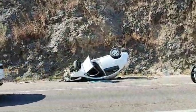 El conductor perdió el control debido a que posiblemente viajaba a exceso de velocidad y volcó.