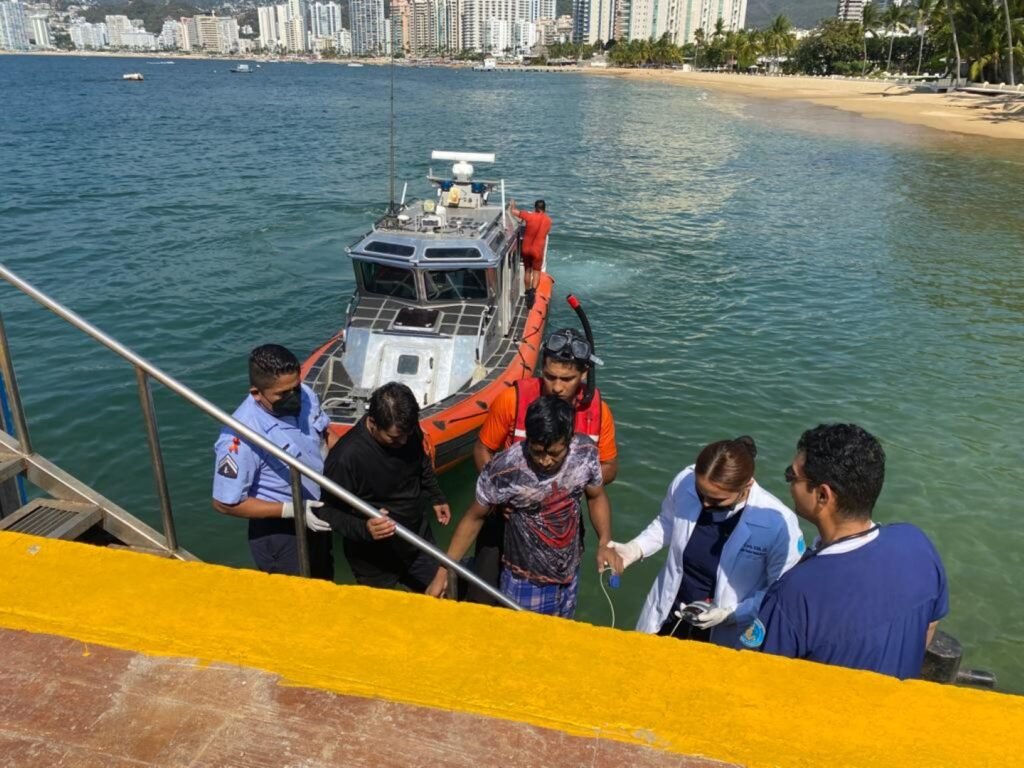 De inmediato, se ordenó el zarpe de una embarcación tipo Defender, con personal de nadadores de rescate a bordo, pertenecientes al ENSAR Acapulco.