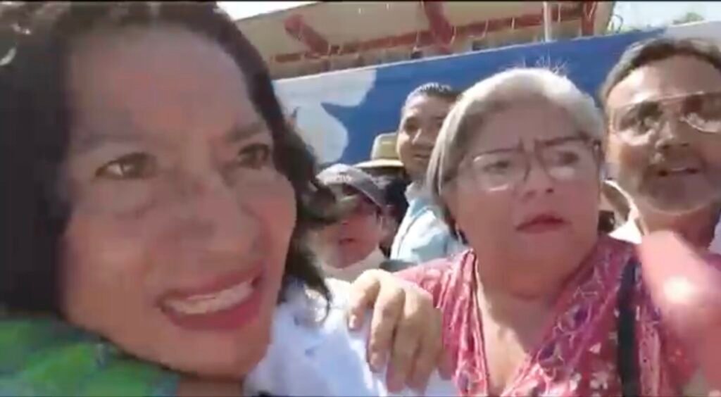En un video que circuló en redes sociales, se observa a la primera autoridad municipal, gritando “¡cálmate!”, cuando intenta avanzar entre la gente hacía la salida del evento, realizado en la cancha deportiva de la colonia Emiliano Zapata.