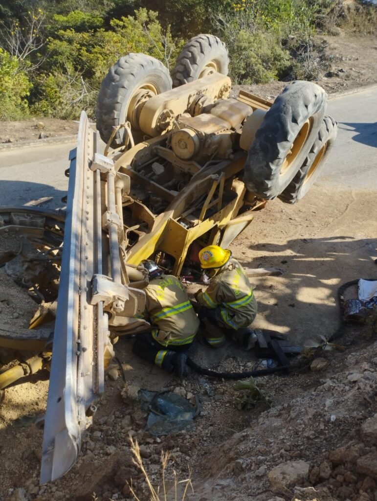 Un hombre que conducía una máquina retroexcavadora, murió al volcar la misma justo a la entrada a Coacoyulillo, municipio de Chilpancingo.