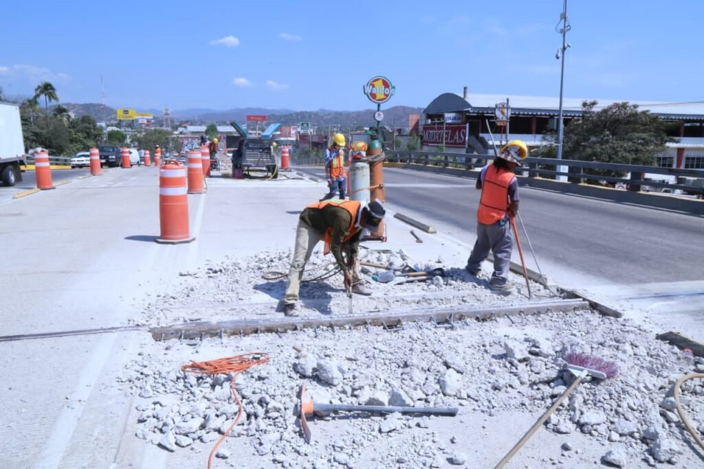 ACAPULCO. —La gobernadora Evelyn Salgado Pineda cumple a los habitantes de Acapulco con la rehabilitación integral del puente vehicular ubicado en el bulevar Vicente Guerrero, donde se invierten poco más de 14 millones de pesos, en beneficio de 1.5 millones de usuarios.