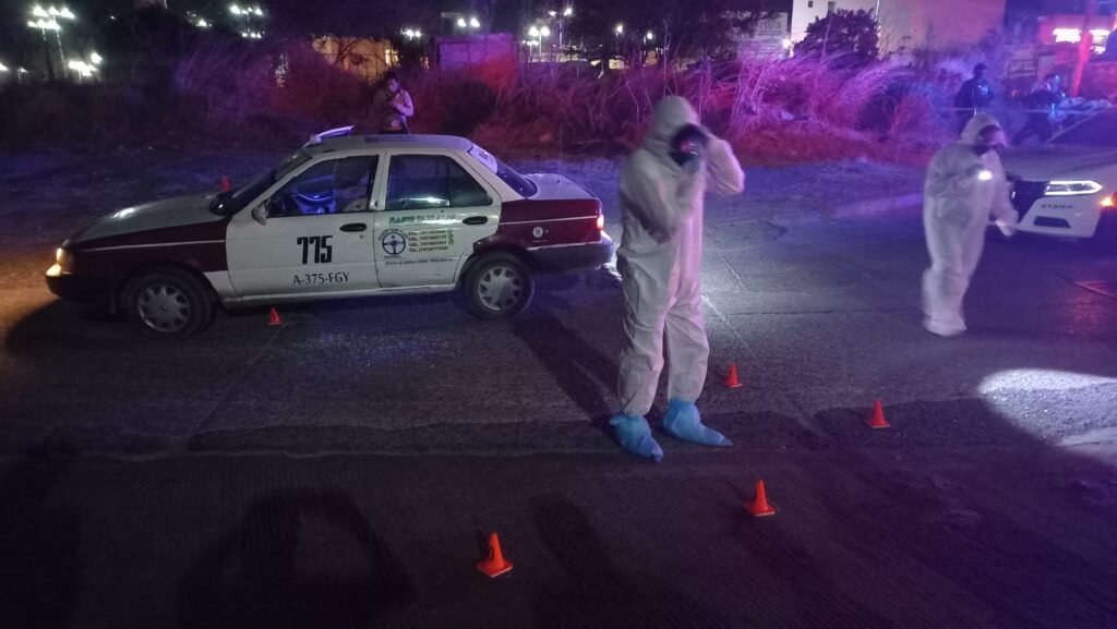 El reporte policiaco señala que hombres armados se emparejaron a los tripulantes del auto del servicio público, de la marca Nissan, tipo Tsuru, número 775, del sitio Alfa, con cromática blanca y vino, y del lado del conductor les dispararon a corta distancia.