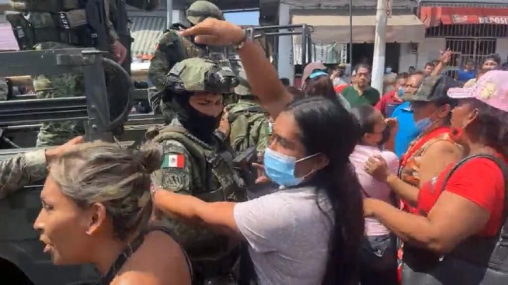 Comerciantes del Mercado Central de Acapulco retuvieron a elementos del Ejército Mexicano, para tratar de evitar que se llevaran detenido a un hombre por portación de arma de fuego.