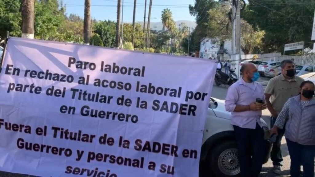 La mañana de este lunes, empleados de la Secretaría de Agricultura y Desarrollo Rural (Sader) realizaron un paro de labores y bloquearon la avenida Ruffo Figueroa, en Chilpancingo.