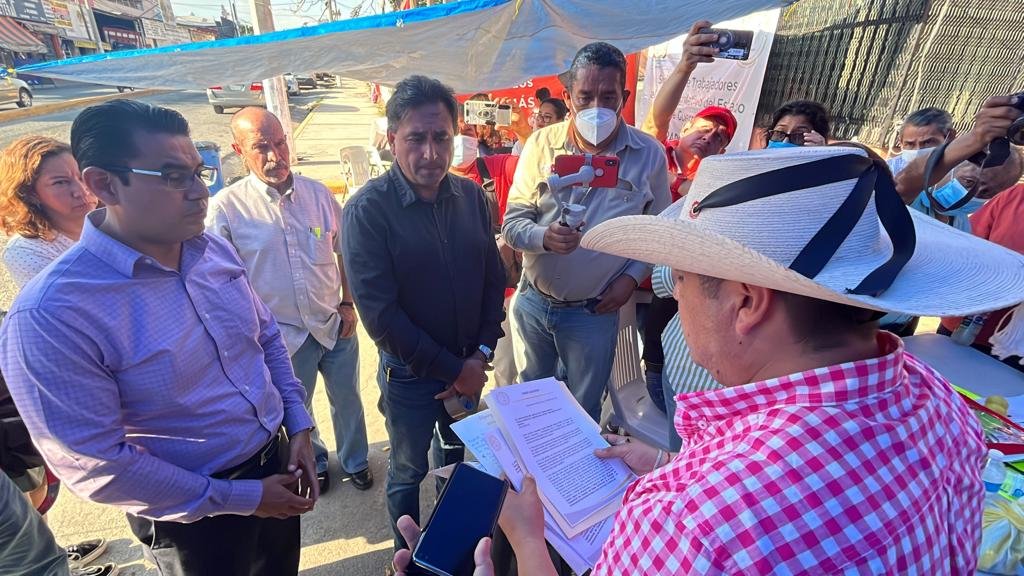 La notificación se llevó cabo en la puerta de acceso principal del Congreso, donde se encuentran los trabajadores en paro con su bandera rojinegra, ante la fe del notario público 2 del Distrito Judicial de Los Bravo, Emilio Ortiz Uribe, y fue recibida por el secretario general del sindicato, Fernando Martínez Román, quien aceptó la propuesta de diálogo.