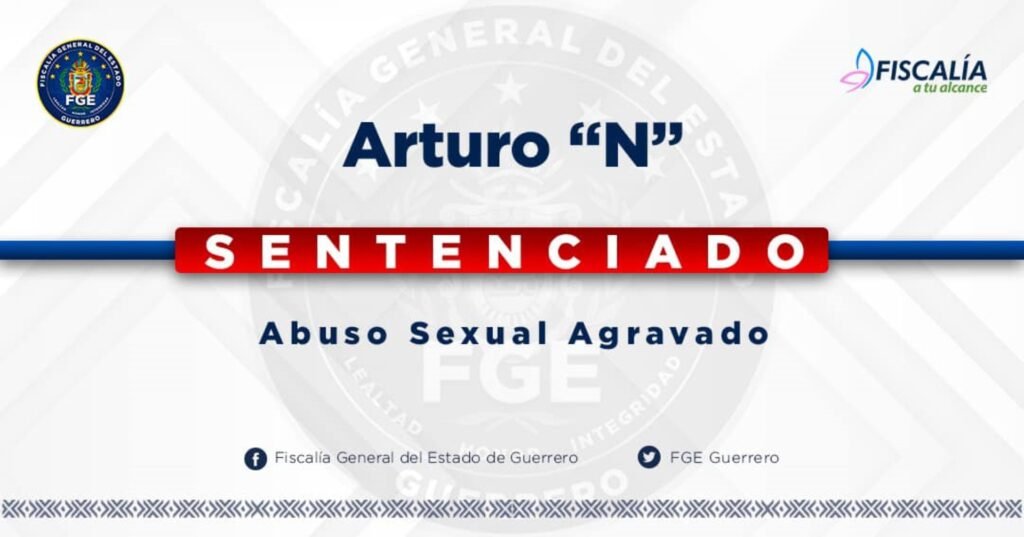 La Fiscalía General del Estado, logró sentencia condenatoria en contra de Arturo “N”, por el delito de Abuso Sexual Agravado, cometido en agravio de una mujer de identidad reservada por los hechos ocurridos el 11 de agosto del 2019, en la colonia Adolfo López Mateos de Iguala de la Independencia.