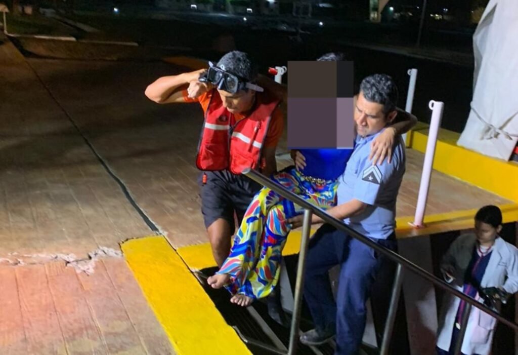 Al llegar al lugar, personal naval localizó a una mujer, quien se encontraba con problemas para salir del mar, por lo que procedieron a sacarla del agua y trasladarla al muelle naval.