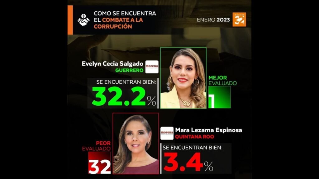 La mandataria guerrerense, Evelyn Salgado es considerada como la gobernadora que mejor ha trabajado en el combate a la corrupción, ubicándola en el primer lugar de entre todos sus homólogos, en una encuesta realizada por la consultora Arias en la última semana de enero.