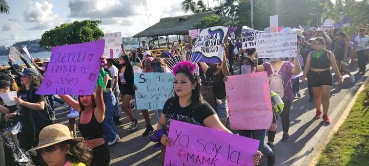 En el marco de la conmemoración del Día Internacional de la Mujer, integrantes de colectivos feministas participaron en una marcha por la Costera Miguel Alemán, en Acapulco, en la que exigieron justicia para las víctimas de la violencia de género y los feminicidios en Acapulco.