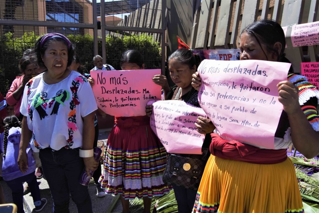 Colocaron una ofrenda en la entrada, con veladoras y fotografías, para recordar a dos de sus integrantes asesinadas en el año 2015, así como también exigieron que se atienda la situación de 15 familias desplazadas desde hace más de 8 años, y de las cuales aún no han tenido respuesta.