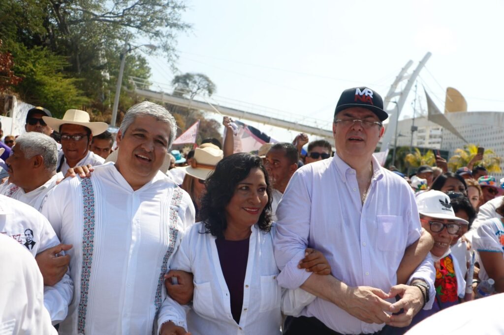 Este domingo marcharon cientos de personas en la Costera Miguel Alemán para manifestar su apoyo al secretario de Relaciones Exteriores, Marcelo Ebrard Casaubón, quien encabezó el contingente junto con la presidenta municipal de Acapulco, Abelina López Rodríguez.