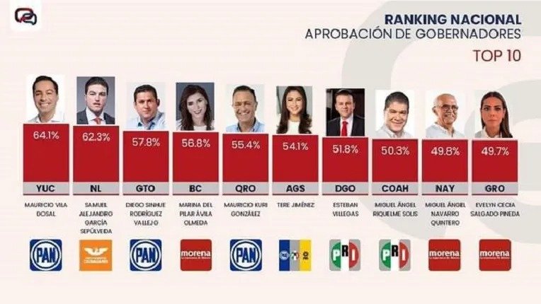 De acuerdo con la medición presentada este mes, la guerrerense se ubica en la décima posición entre los gobernantes con mayor aprobación ciudadana y una de las tres gobernadoras que entran en el ranking nacional.