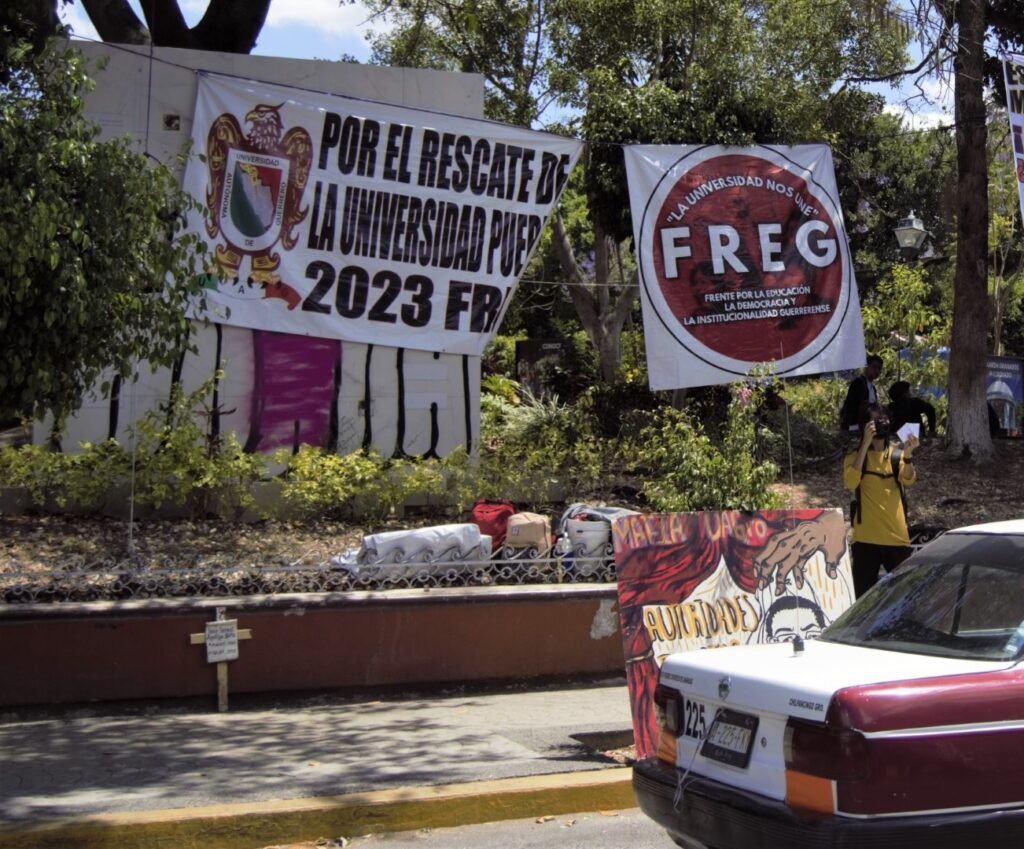 La mañana de este jueves, integrantes del Frente por la Educación, la Democracia y la Institucionalidad Guerrerense (FREG) protestaron en la entrada de las preparatorias 1 y 9, de la capital del estado, por lo que ellos llaman “la dictadura” que existe en la Universidad Autónoma de Guerrero (UAGro).