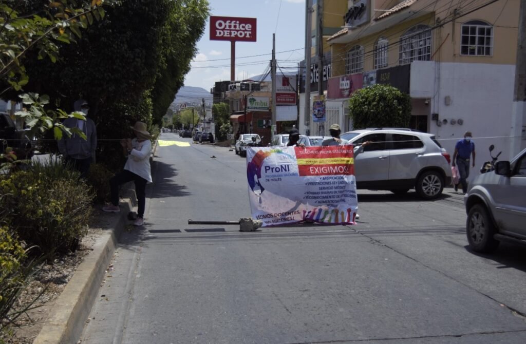 Un grupo de unos 20 docentes pertenecientes al Programa Nacional de Inglés (PRONI) realizaron un bloqueo sobre la avenida Lázaro Cárdenas, exigiendo el pago de cuatro quincenas que aún se les adeudan.