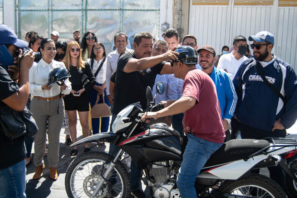 Fueron alrededor de 100 motociclistas los beneficiados con esta acción, la cual sirve para fomentar el uso correcto del casco, evitar accidentes, así como infracciones por parte de las instancias de tránsito municipal y estatal.