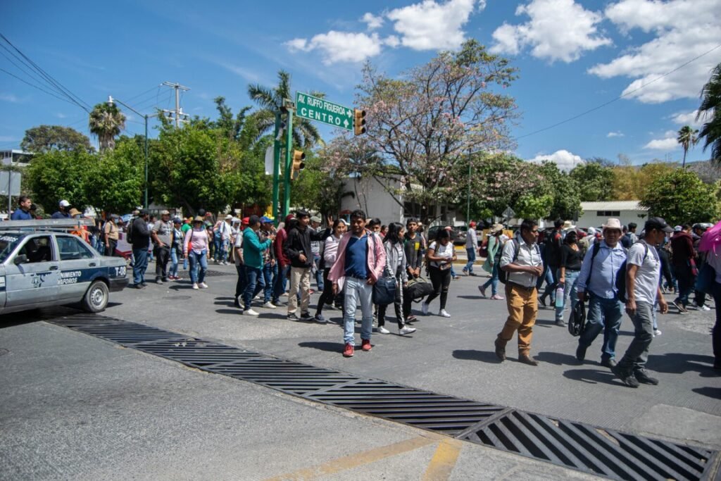 Alumnos, maestros y padres de familia del Frente Estatal de Preparatorias Populares marcharon y posteriormente bloquearon el cruce de Aurrerá sur, esto para exigir el reconocimiento oficial de sus profesores.
