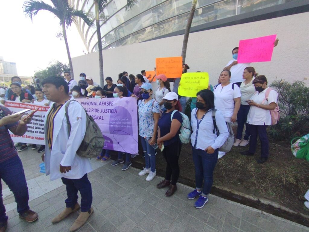 En la sede del evento, trabajadores precarios de la Secretaría de Salud, promotores del hospital de tercer nivel del ISSSTE, mineros y maestros de secundarias técnicas esperaron el arribo del mandatario para exigirle solución a sus demandas.