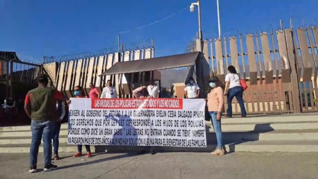 Este viernes por la mañana una treintena de viudas e hijos de policías del Estado acudieron a Palacio de Gobierno a protestar y lograron obtener una mesa de diálogo donde plantearon la exigencia de una audiencia con la gobernadora, Evelyn Salgado Pineda.