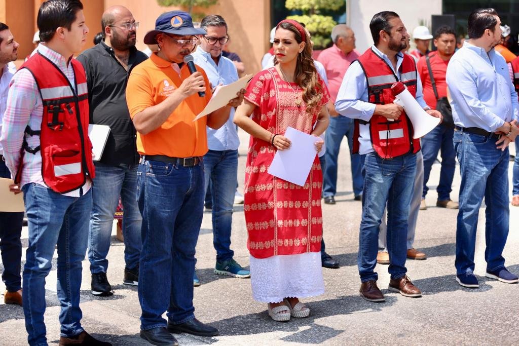 La gobernadora estuvo acompañada del secretario de Protección Civil, Roberto Arroyo Matus, y del secretario de Gobierno, Ludwig Marcial Reynoso Núñez, entre otros funcionarios.