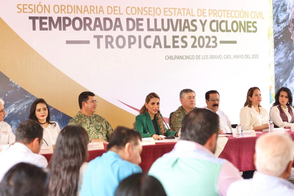 Este martes, la gobernadora encabezó en Casa Guerrero la sesión permanente al Consejo Estatal de Protección Civil, donde se informó que se han habilitado, en caso de ser necesarios, 631 refugios temporales con capacidad para albergar hasta 136 mil personas en las 8 regiones de la entidad.