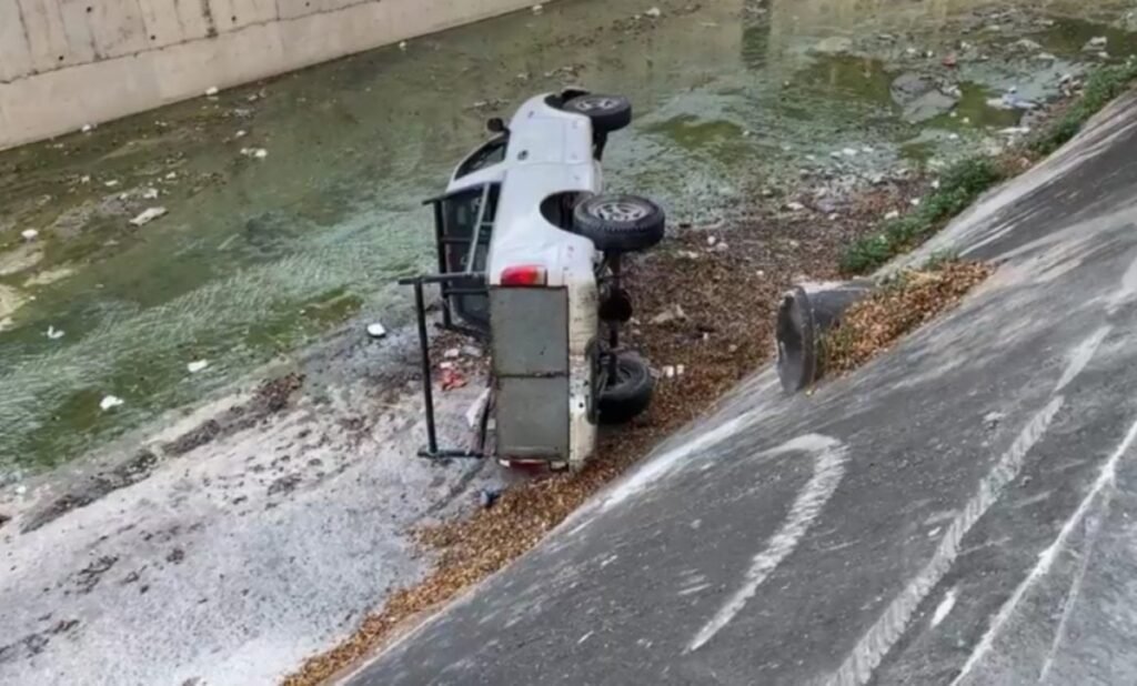 Dos tripulantes de una camioneta cayeron a las aguas negras del Río Huacapa, frente a la 35 Zona Militar de Chilpancingo.