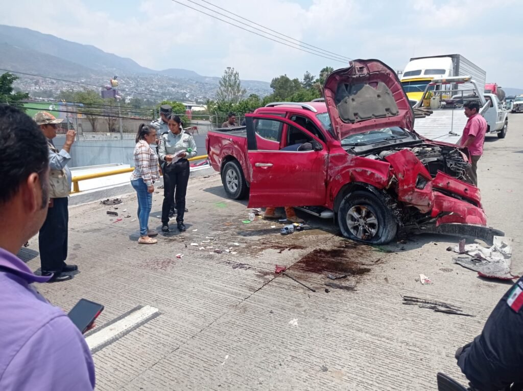 Esto ocasionó que la camioneta saliera disparada, se impactara con otro vehículo, tipo Fiesta y al mismo tiempo se volteara.