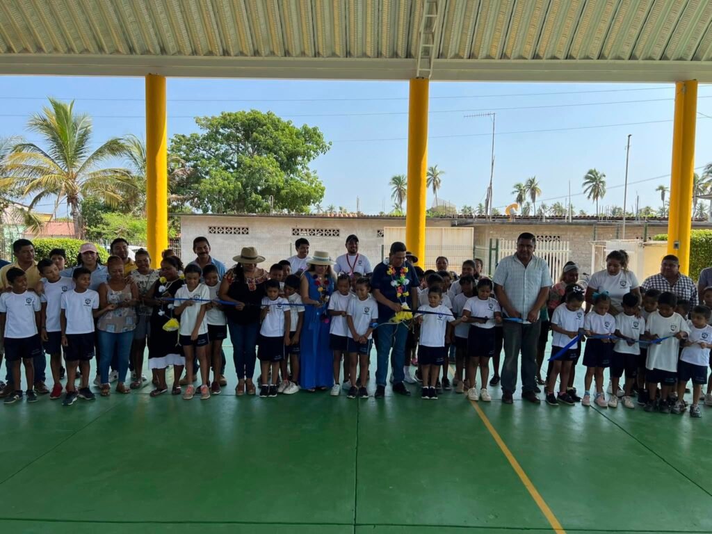 SAN MARCOS. – Con un emocionante acto de corte de listón, el alcalde de San Marcos Tomás Hernández Palma, llevó a cabo la inauguración de una techumbre y una cancha de usos múltiples en la escuela primaria “Ignacio Manuel Altamirano” en la comunidad de San José Guatemala, ubicada en las cercanías del río Papagayo.