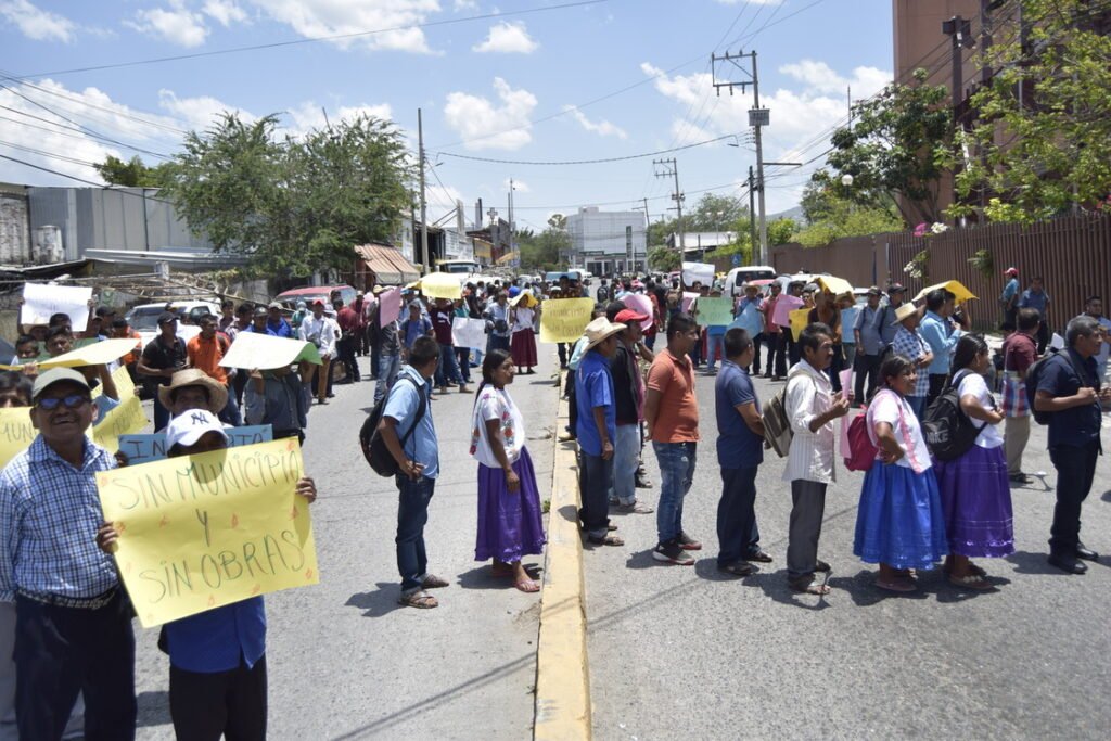 Alrededor de 200 habitantes encabezados por los promotores de los municipios Santa Cruz del Rincón, San Nicolás, Ñu Savi y Las Vigas, que marcharon desde Aurrerá sur con dirección al Congreso del Estado, señalaron que desde finales del año 2022 se debieron instalar los cabildos correspondientes de cada municipio, pero hasta ahora esto no ha ocurrido y la consecuencia es que estos municipios no cuenten con recursos para obras públicas.