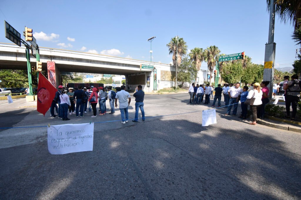 Los manifestantes, quienes eran padres de familia y maestros de este plantel bloquearon la vialidad con cuerdas y pancartas.