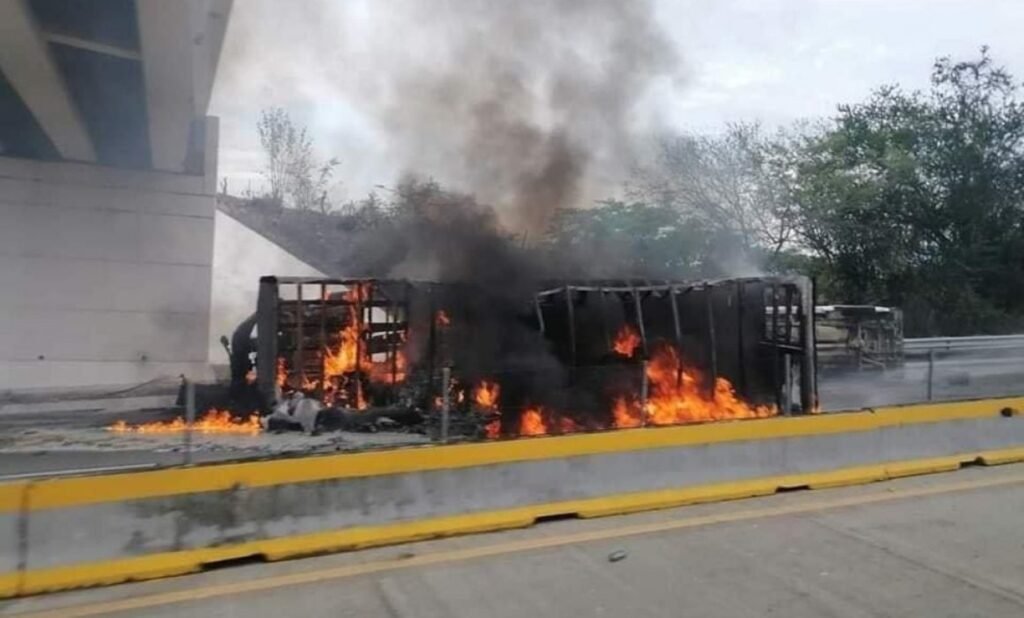 Fue a eso de las 06:00 horas cuando reportaron al número de emergencias que un tráiler se estaba incendiando, elementos de Protección Civil del Estado se trasladaron al lugar para sofocar el incendio donde solo hubo daños materiales, ya que el fuego consumió el camión en su totalidad y lo que transportaba, el chofer logró salir con bien.