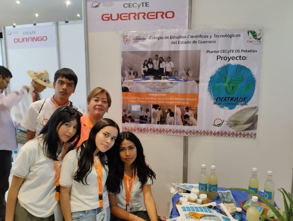 PUEBLA. —Estudiantes del Plantel 05 de CECyTE Petatlán, lograron el Tercer Lugar en la Categoría de “Investigación” con el Proyecto “Citraloe”, con el apoyo y respaldo de la gobernadora Evelyn Salgado para la creación de proyectos que resuelvan problemas de la sociedad actual y a su vez promover el emprendedurismo aplicando los valores que busca implementar la nueva Escuela Mexicana.