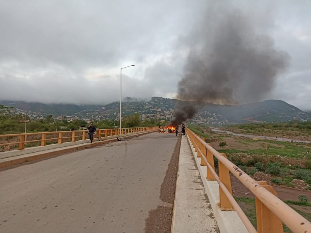 Un vehículo chocó sobre el libramiento de Tlapa y posteriormente quedó totalmente calcinado.