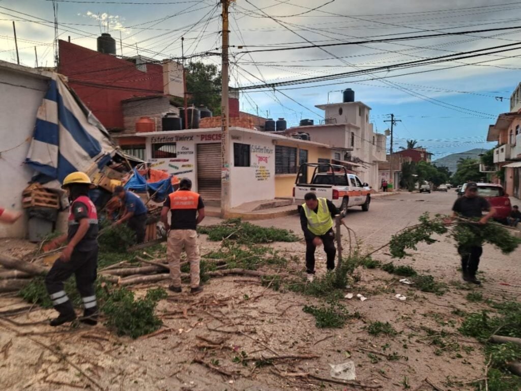 En Costa Chica, en Ometepec, se produjo la caída de un poste de la Comisión Federal de Electricidad (CFE) en la colonia Nuevo Amanecer, además de ramas en el barrio San Antonio.