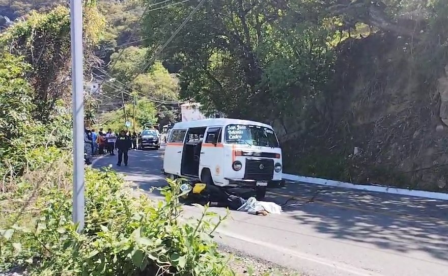 Un hombre murió después de impactarse en su motocicleta contra una combi del servicio público de la ruta San Juan, en Taxco de Alarcón.