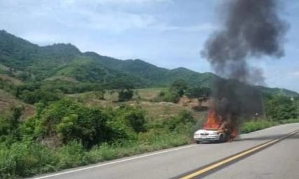 Fue ayer a eso de las 10:30 horas que mediante una llamada al número de emergencias 911, que alertaron a las autoridades que un automóvil estaba siendo consumido por las llamas.