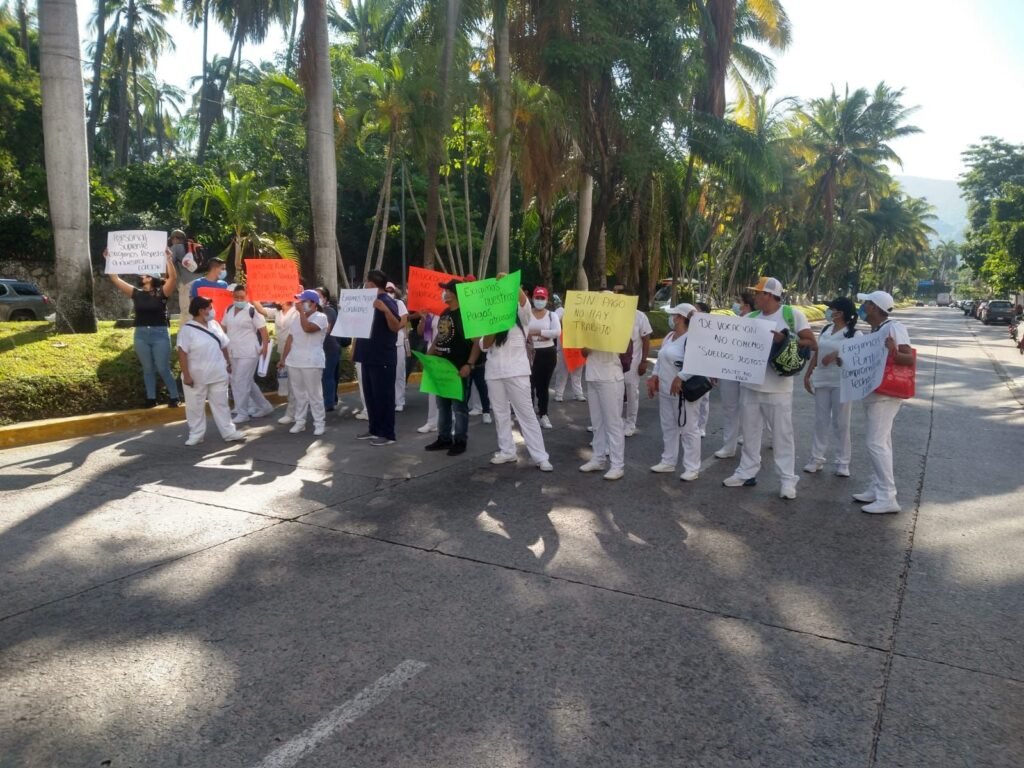 ACAPULCO. —Trabajadores eventuales de áreas del Instituto de Seguridad y Servicios Sociales de los Trabajadores del Estado (ISSSTE) en este puerto realizaron una protesta y bloquearon un carril de la Costera Miguel Alemán que conecta de Caleta a la Base.