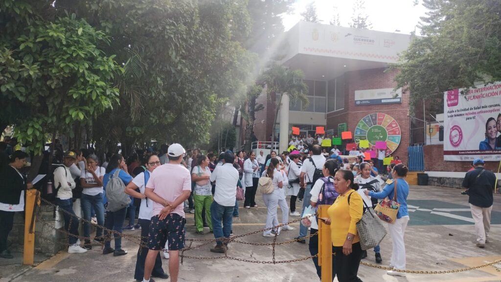 La mañana de este lunes, trabajadores de contrato de la Secretaría de Salud en Guerrero (SSG) protestaron en sus oficinas y posteriormente marcharon al palacio de gobierno, para exigir pagos atrasados y renovaciones de contrato.